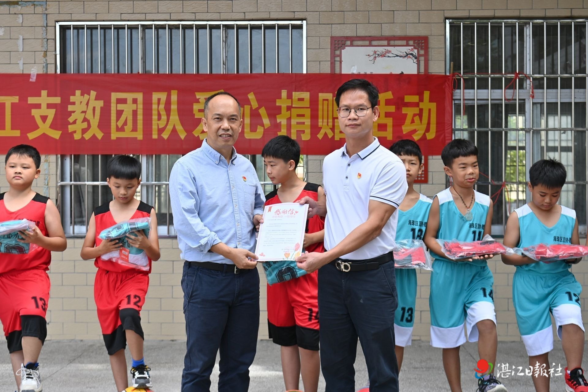 接球、運球、上籃……接過新籃球,在支教體育老師龐柱德的指導下,身穿新籃球隊服的10名籃球小將,在籃球場上盡情揮灑汗水,享受運動的快樂。該校負責人黃琬表示,非常感謝海珠區支教廉江組團隊的大力支持,學校留守兒童居多,籃球不只是為學生提供了強身健體的機會,也幫助學生從體育運動中學會團隊協作,激發運動熱情和斗志,增強集體榮譽感和自信心。