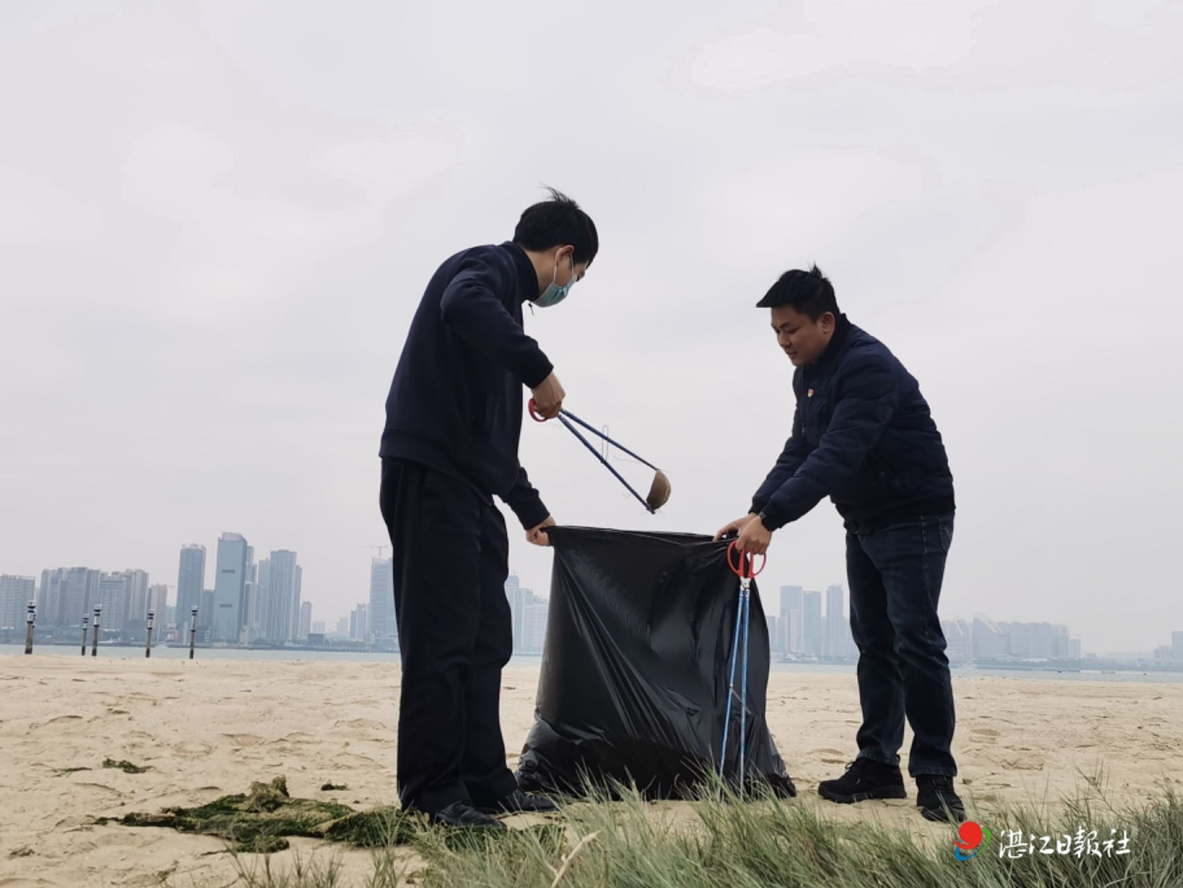 活動現場,黨員干部來到湛江奧體中心紅樹林海灘處開展“凈灘”活動,其中“蔚藍力量”志愿服務團隊也參與其中。凜冽的寒風、泥濘的灘涂并沒有擊退大家的熱情,他們手持夾鉗、環保袋等清潔工具,沿著紅樹林灘涂岸邊進行“地毯式”清理。大家分工協作、相互配合,細心清理紅樹林灘涂岸邊的廢棄物。經過一番努力,沿岸紅樹林灘涂變得干凈整潔。