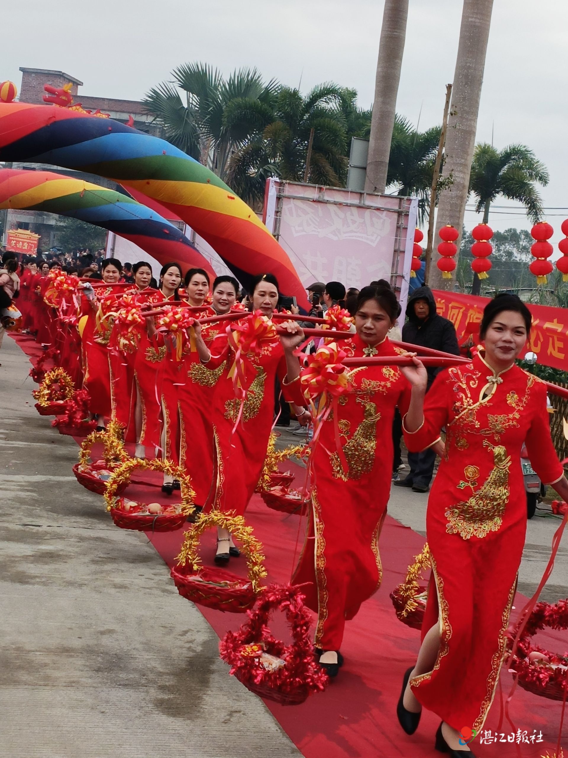 近日,在廉江市高橋譚福村,數(shù)百位“姑姐”回娘家孝親敬老。她們笑靨如花,挑著擔(dān)子,按不同的隊(duì)列走過(guò)村道,有序進(jìn)入文化廣場(chǎng),與在那里等待的親人們匯合。