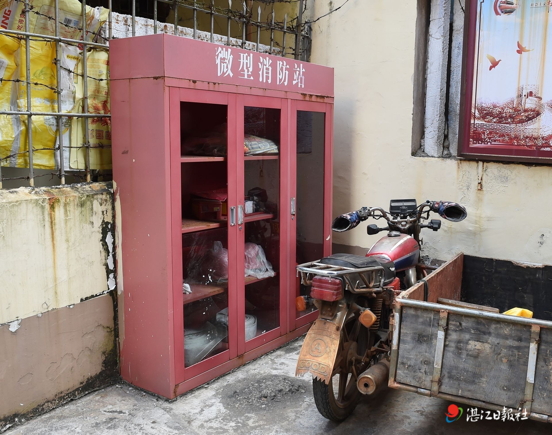 1月17日下午,在霞山區(qū)嶺南路16號(hào)電大宿舍區(qū)內(nèi)的微型消防站,記者發(fā)現(xiàn)消防器材不齊全,器材箱前停靠三輪摩托車。