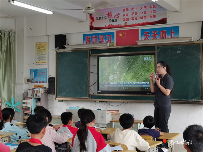 活動當天,干警還走進南滘學校,開展“守護紅樹林 院校齊行動”法治宣傳活動,給學生們帶來了一堂形象生動的環保實踐小課堂。