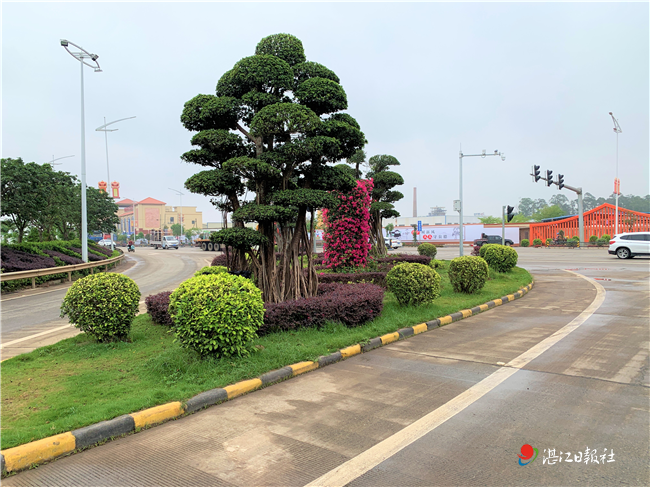 在栽種的植物上,渝湛高速選用常綠、易養(yǎng)活、少病蟲的品種,種植了宮粉紫荊、雞蛋花等喬木和簕杜鵑、非洲茉莉、紫蟬、紅車等灌木共6200余株,輔以彩霞變?nèi)~木、清香木、龍船花、野牡丹、朱蕉等地被6400余株點綴,鋪種草皮5088㎡。每一處綠化設(shè)計錯落有致、簡單舒適,營造出了“粵西明珠、碧海藍(lán)天”的景觀空間效果,讓行駛經(jīng)過的司乘均有一種“車在路上走,人在畫中游”的愉快出行體驗。