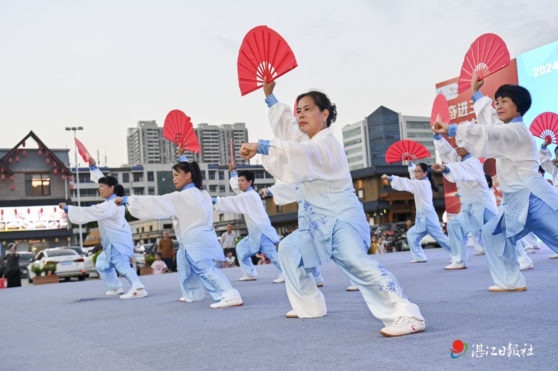 啟動(dòng)儀式上,12個(gè)精彩的體育健身項(xiàng)目逐一亮相,包括800人共同展示的健身氣功《八段錦》、輪滑技藝表演、無人機(jī)表演、跆拳道、少兒籃球操、詠春拳、拉丁舞、八極拳、廣場舞、太極扇、街舞以及武術(shù)特技等,展現(xiàn)了湛江市豐富多彩的體育文化和市民積極參與健身的熱情。