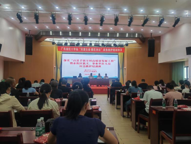 為進一步普及應急救護知識,營造“人人學急救、急救為人人”的良好氛圍。8月14日,湛江市紅十字會聯(lián)合赤坎區(qū)衛(wèi)生健康局在赤坎區(qū)公共文化服務中心舉辦了落實“百縣千鎮(zhèn)萬村高質(zhì)量發(fā)展工程”暨赤坎區(qū)機關(guān)、事業(yè)單位人員應急救護培訓班。市紅十字會、赤坎區(qū)衛(wèi)生健康局相關(guān)負責人,全區(qū)機關(guān)、事業(yè)單位人員約70人參加了培訓。