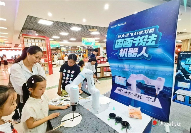據介紹,該展區通過國畫書法機器人、AI 造夢空間、VR 科學實驗室、與未來對話、益智啟蒙等板塊,把科學知識和科普展品送到廣大群眾中,讓他們能夠近距離感受人工智能的魅力和樂趣,激發全民尤其是青少年崇尚科學、探索未知的熱情。