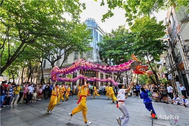 在赤坎老街,“調(diào)順網(wǎng)龍”展示展演。記者張鋒鋒 攝
