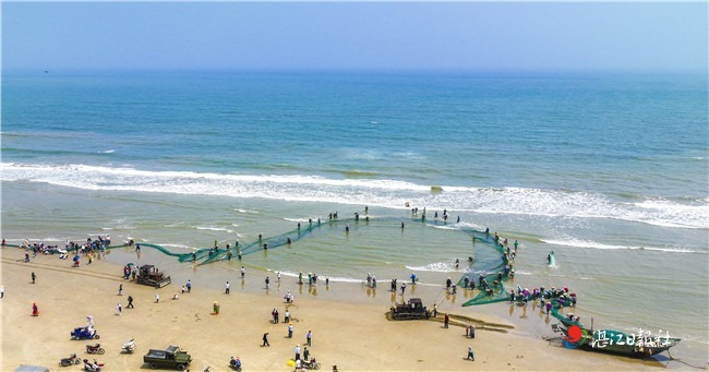 南三島拉大網(wǎng)熱鬧非凡。 記者張鋒鋒 攝