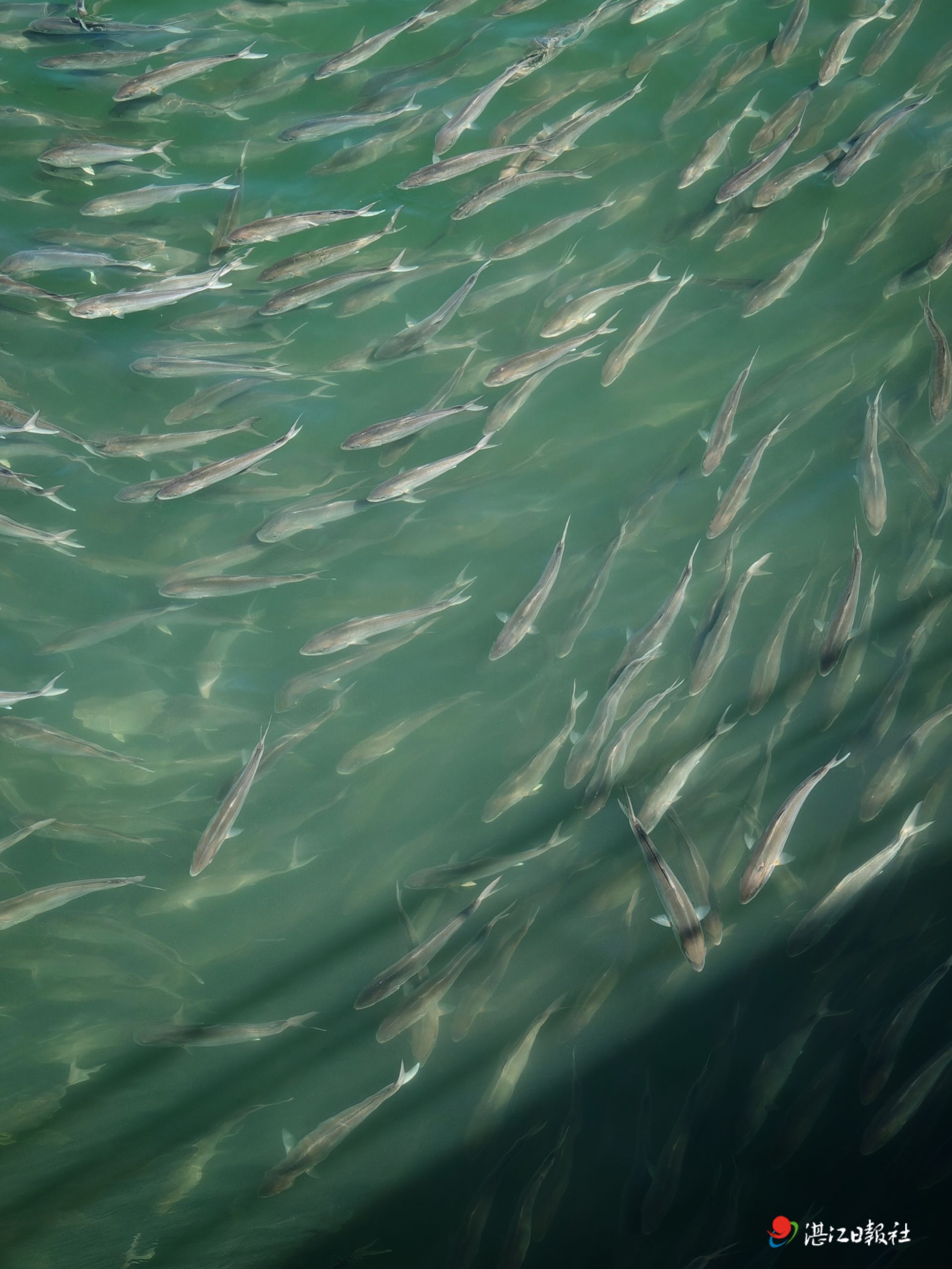 隨著工作人員按下開(kāi)關(guān),飼料自動(dòng)投喂系統(tǒng)每隔一段時(shí)間就自動(dòng)啟動(dòng),儲(chǔ)存在飼料倉(cāng)的飼料通過(guò)管道運(yùn)輸,從播撒器噴灑而出,金鯧魚(yú)紛紛游到水面上搶食。