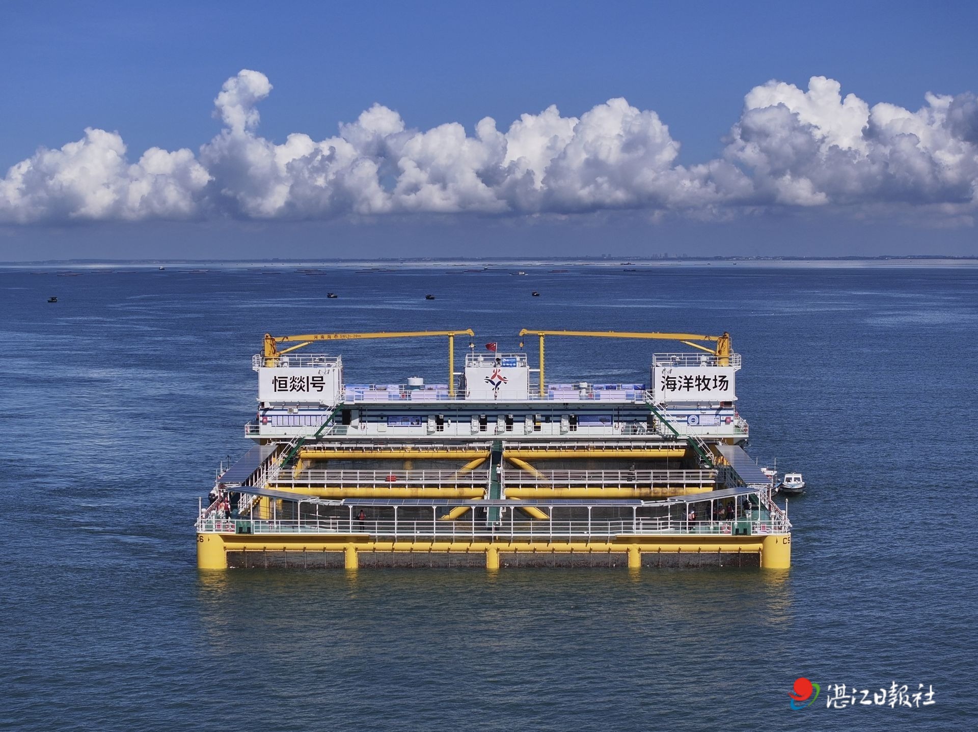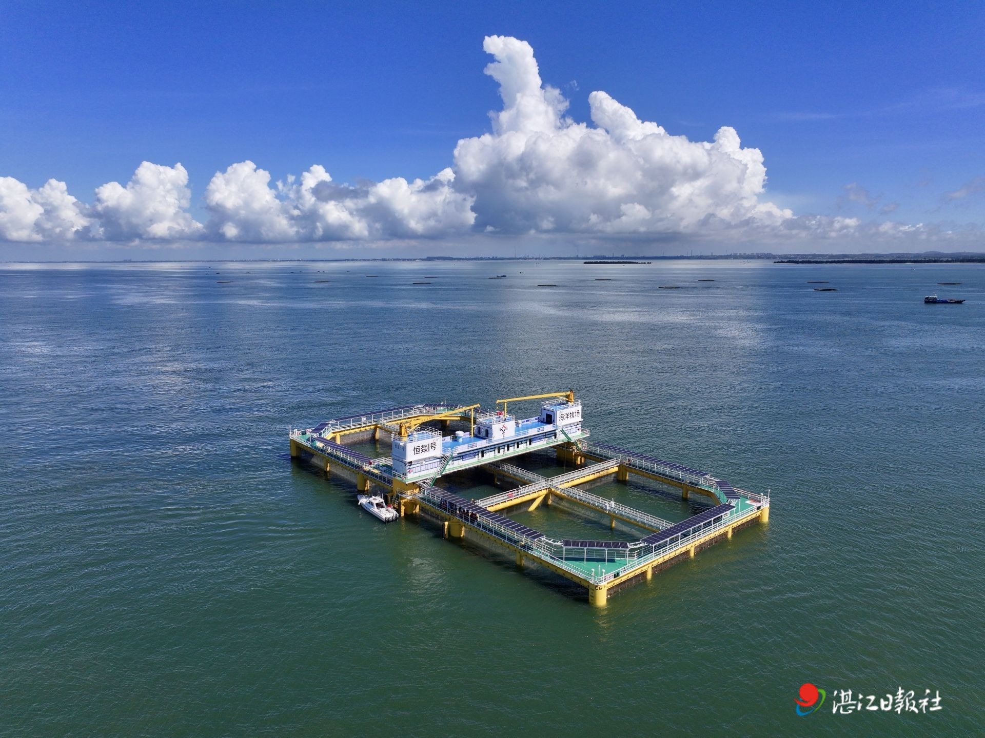 在東海島東南碼頭乘坐快艇出海,一路破浪疾行,歷經(jīng)半小時(shí),一座巨大的“海上堡壘”才映入眼簾。9月2日,記者登上目前廣東規(guī)模最大的海上養(yǎng)殖裝備——半潛錨泊桁架式智能養(yǎng)殖平臺(tái)“恒燚1號(hào)”。