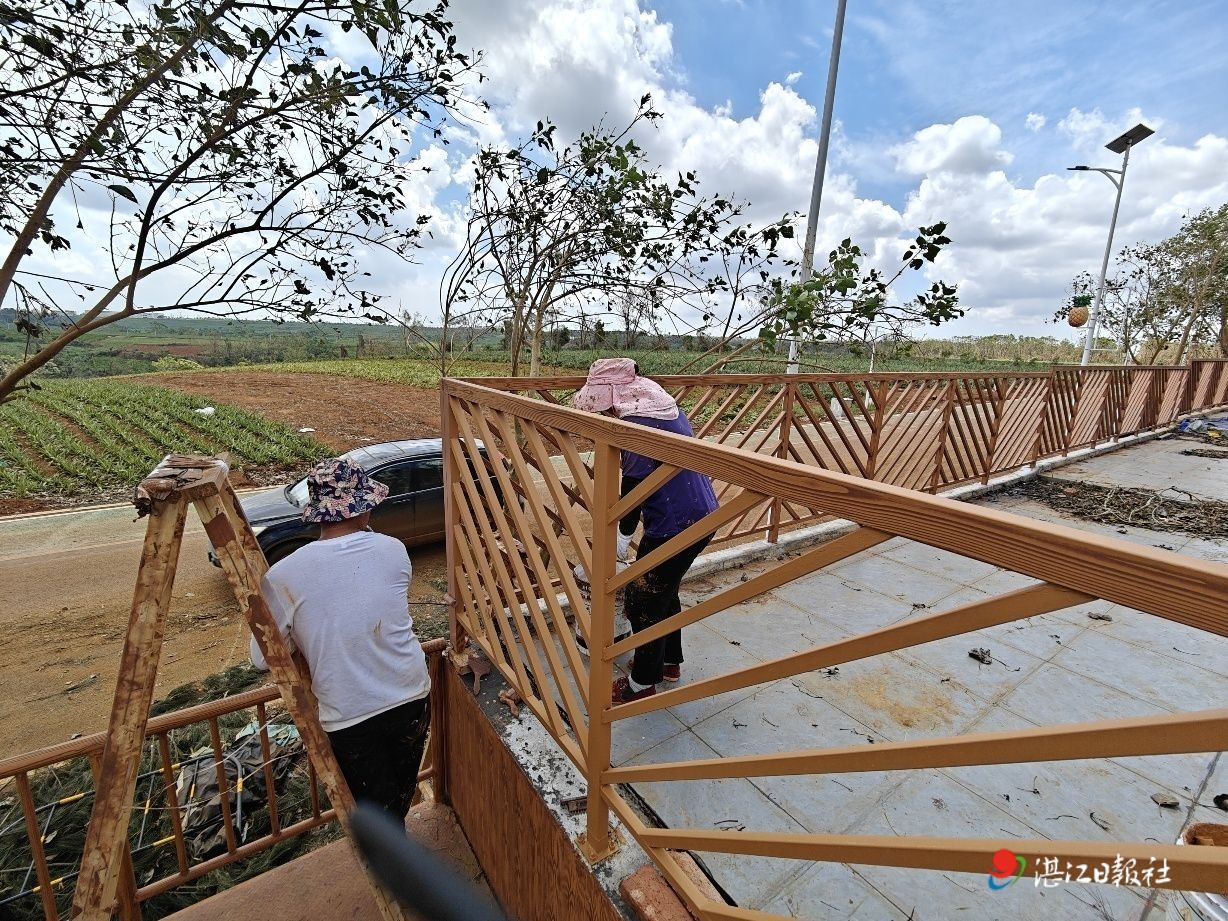 12日,在“菠蘿的海”旅游區,工人在修復臺風中損壞的設施。