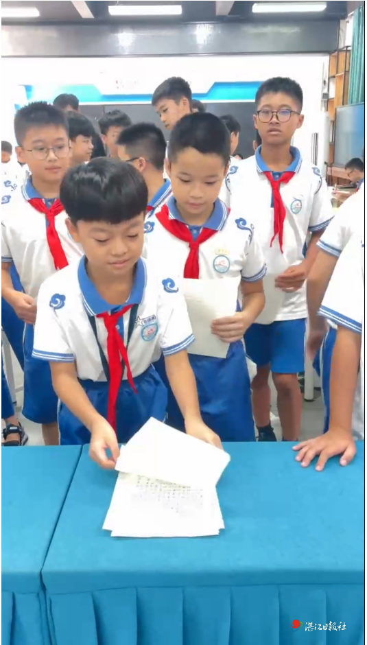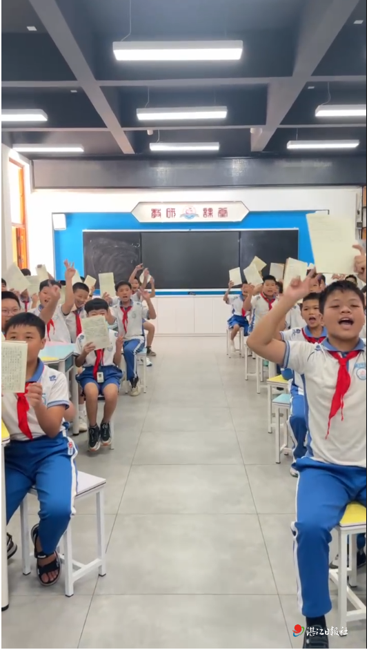 9月11日,徐聞縣梅溪實驗學校復課,六年級的學生們一大早回到學校,看到國家消防救援局廣東機動隊伍的指戰員們留下的“特殊禮物”以及被整整齊齊疊成“豆腐塊”的被子,都感到十分意外和驚喜,整個校園沸騰了起來。