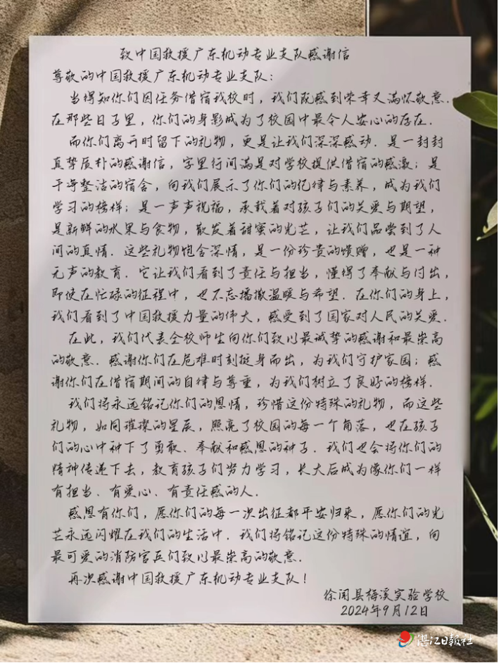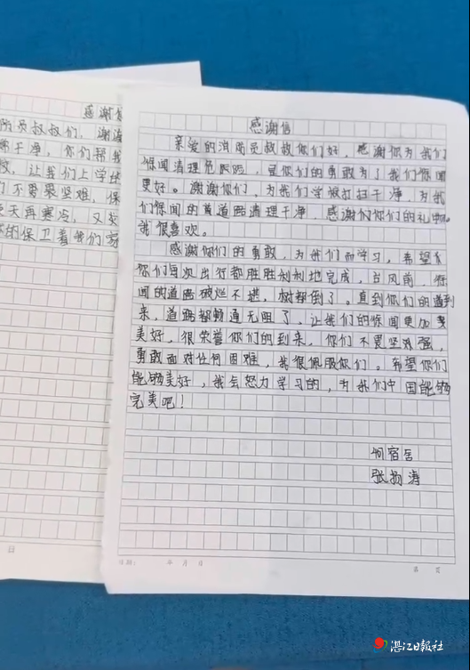 “十分感謝你們不顧危險來幫助我們,讓我們充滿安全感,讓我們僅三天就回到了美麗的校園。你們辛苦了!”學生羅明揚在回信中寫道。