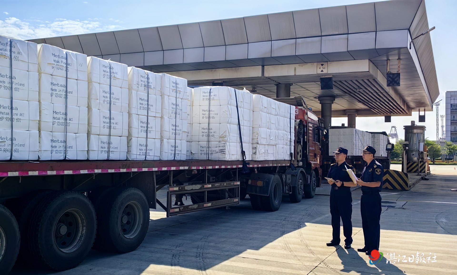 國慶假期,湛江保稅物流中心(B型)車水馬龍。在湛江海關所屬霞海海關監管下,裝載著4000余噸芬蘭進口紙漿貨車駛出卡口,駛向等待原料投產的湛江晨鳴漿紙有限公司車間。