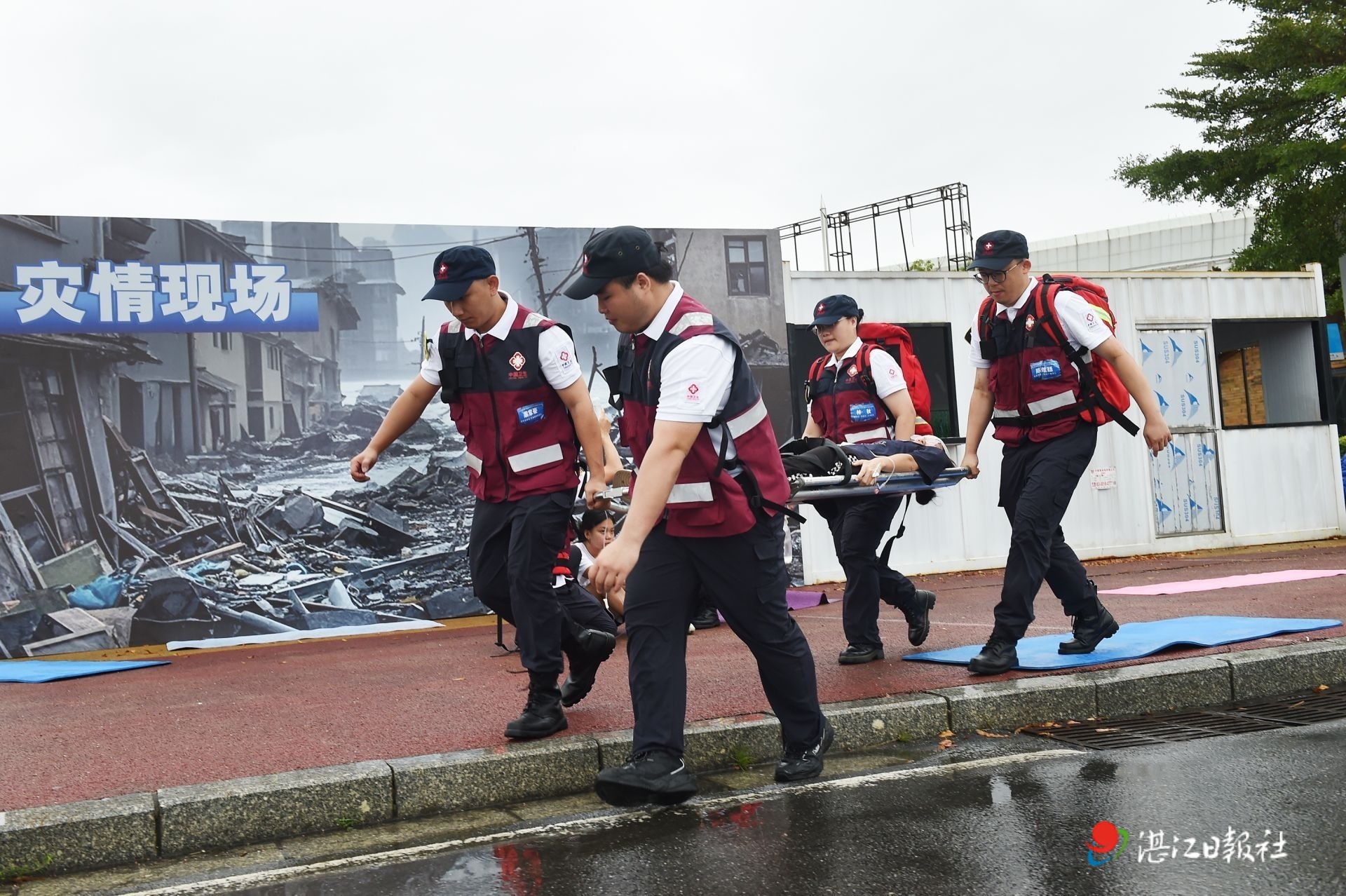 演練以湛江海域發(fā)生地震導(dǎo)致海嘯,引起坡頭區(qū)沿海低洼地區(qū)多處房屋及廠房倒塌為災(zāi)害背景,當(dāng)?shù)匦l(wèi)生院處于癱瘓狀態(tài),大量人員受傷需要救治,粵西片區(qū)緊急醫(yī)學(xué)救援隊(duì)按照《廣東省突發(fā)公共事件應(yīng)急預(yù)案》進(jìn)行衛(wèi)生應(yīng)急響應(yīng),聯(lián)合開展醫(yī)學(xué)救援應(yīng)急演練。