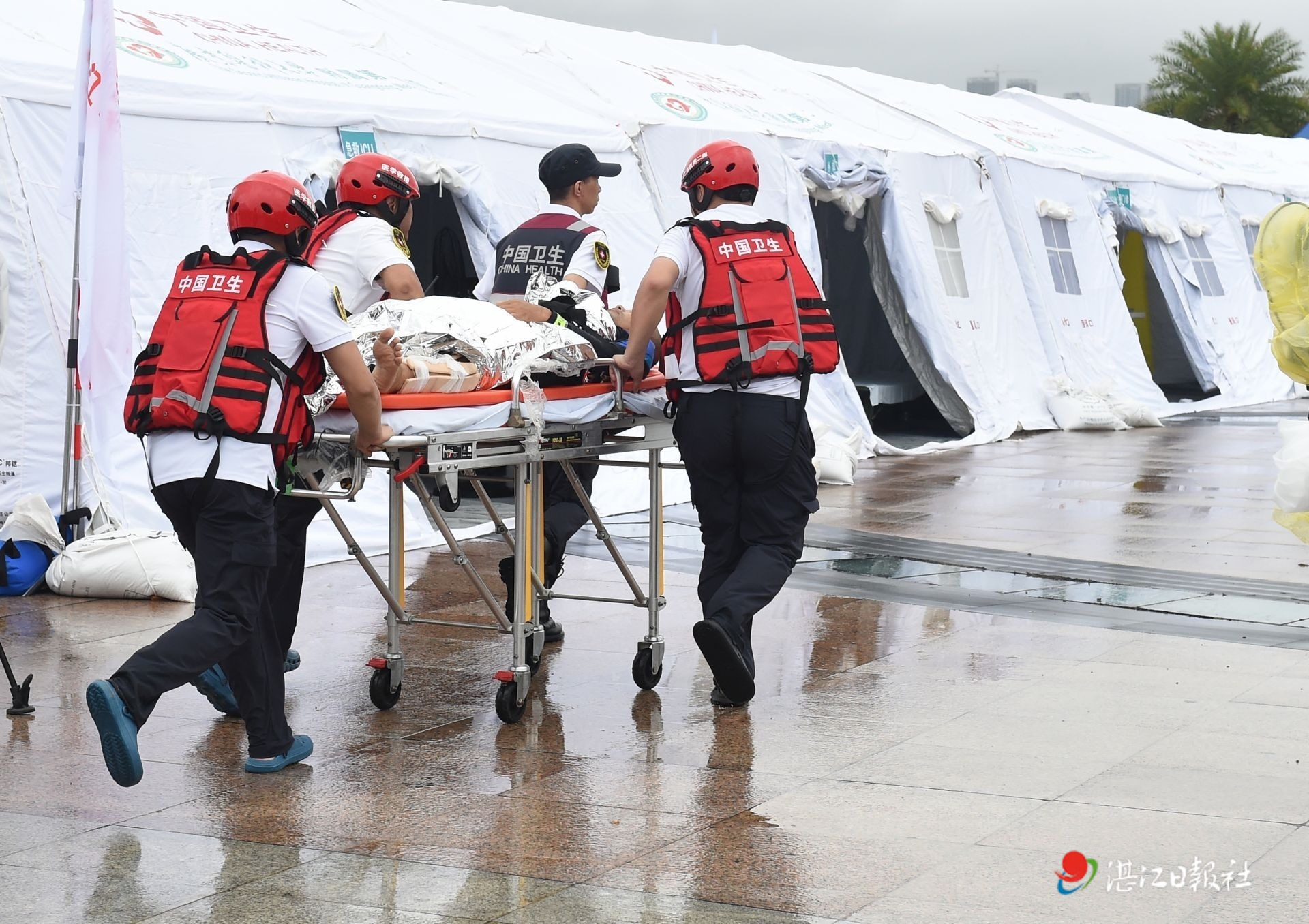 湛江市衛(wèi)生健康局啟動(dòng)應(yīng)急響應(yīng),派出湛江市緊急醫(yī)學(xué)救援隊(duì),同時(shí)請(qǐng)求醫(yī)療支援,廣東省衛(wèi)生健康委員會(huì)派遣陽江、茂名緊急醫(yī)學(xué)救援隊(duì)支援。湛江市衛(wèi)生健康局啟動(dòng)湛江市背囊先遣小分隊(duì)前往救治,背囊先遣小分隊(duì)抵達(dá)現(xiàn)場(chǎng)展開施救,危重患者經(jīng)處置后由救護(hù)車轉(zhuǎn)送后方醫(yī)院救治。湛江、茂名、陽江緊急醫(yī)學(xué)救援隊(duì)及紅十字湛江龍善水域應(yīng)急救援志愿服務(wù)中心隊(duì)到達(dá)現(xiàn)場(chǎng)支援,聯(lián)合指揮,評(píng)估災(zāi)害現(xiàn)場(chǎng)醫(yī)療需求,搭建帳篷醫(yī)院,派遣救援隊(duì)伍在海邊沿岸及海域搜救;帳篷醫(yī)院開展傷員登記、重癥患者救治、緊急手術(shù)、內(nèi)外婦兒門診、心理咨詢、臨床檢驗(yàn)、后勤保障等工作。