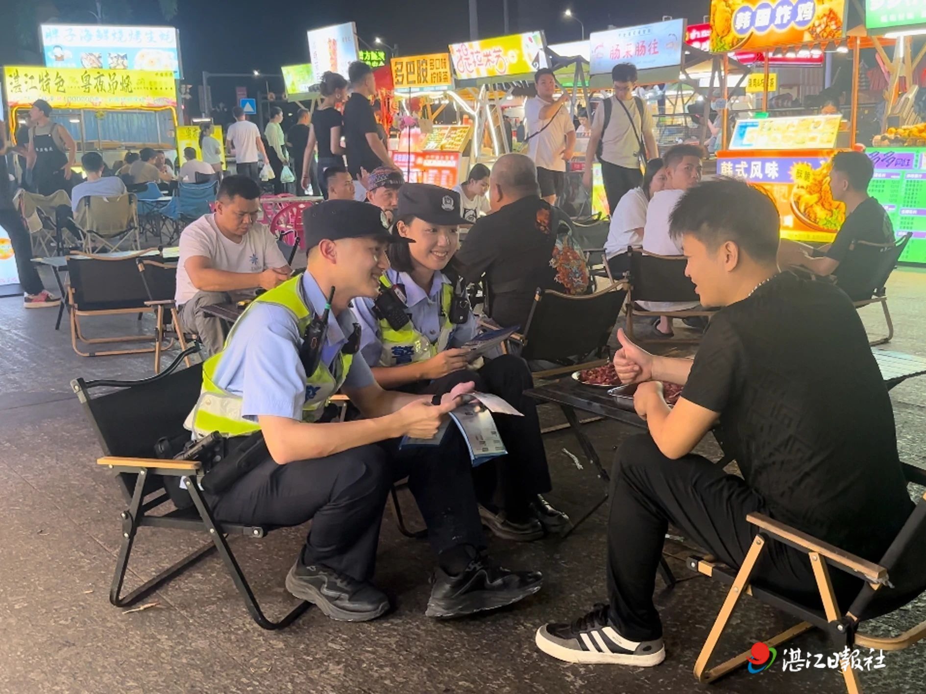 隨著公安宣防持續(xù)深入人心,群眾參與社會面治理防控工作的積極性日益增強,湛江公安在全市多個商圈開展“商戶聯(lián)防”模式,走訪商鋪、夜市經(jīng)營者,聽取意見建議,開展互聯(lián)互助。9月26日23時許,在奧體中心夜市,巡邏民警根據(jù)熱心鋪主提供的預警線索,快速趕到一燒烤攤,及時介入調處了一起口角糾紛,避免其升級成打架警情。