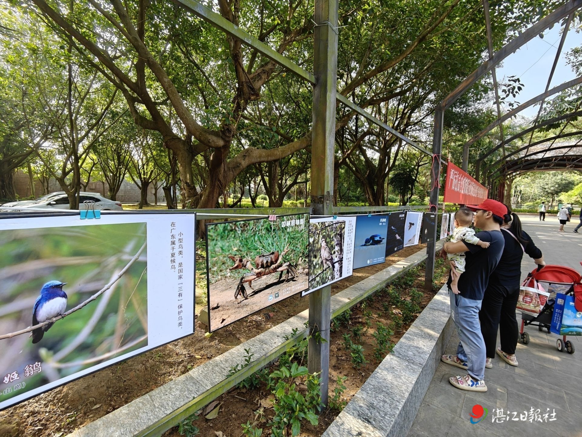走進三嶺山森林公園生態園,綠樹成蔭,陽光斑駁地灑在蜿蜒的小道上,富有教育意義又充滿趣味的展板整齊擺放,吸引市民游客駐足觀看。圖片展涵蓋生態建設、林長制建設、集體林權制度改革等內容解讀,以及野生動植物、森林防火、紅樹林濕地保護等森林文化知識,展示內容豐富,形式多樣。現場同步開展一系列精彩紛呈的活動,市直各單位的100余名職工代表在森林中進行“森呼吸”徒步活動,欣賞林下風景,傾聽林中鳥鳴,感受湛江保護森林資源的成果;“森林音樂會”通過手碟、水晶缽的聲音,讓體驗者在森林中感受自然,放松身心;“森林防火”公益研學課程為市民講解森林防火的重要性及滅火技巧等。