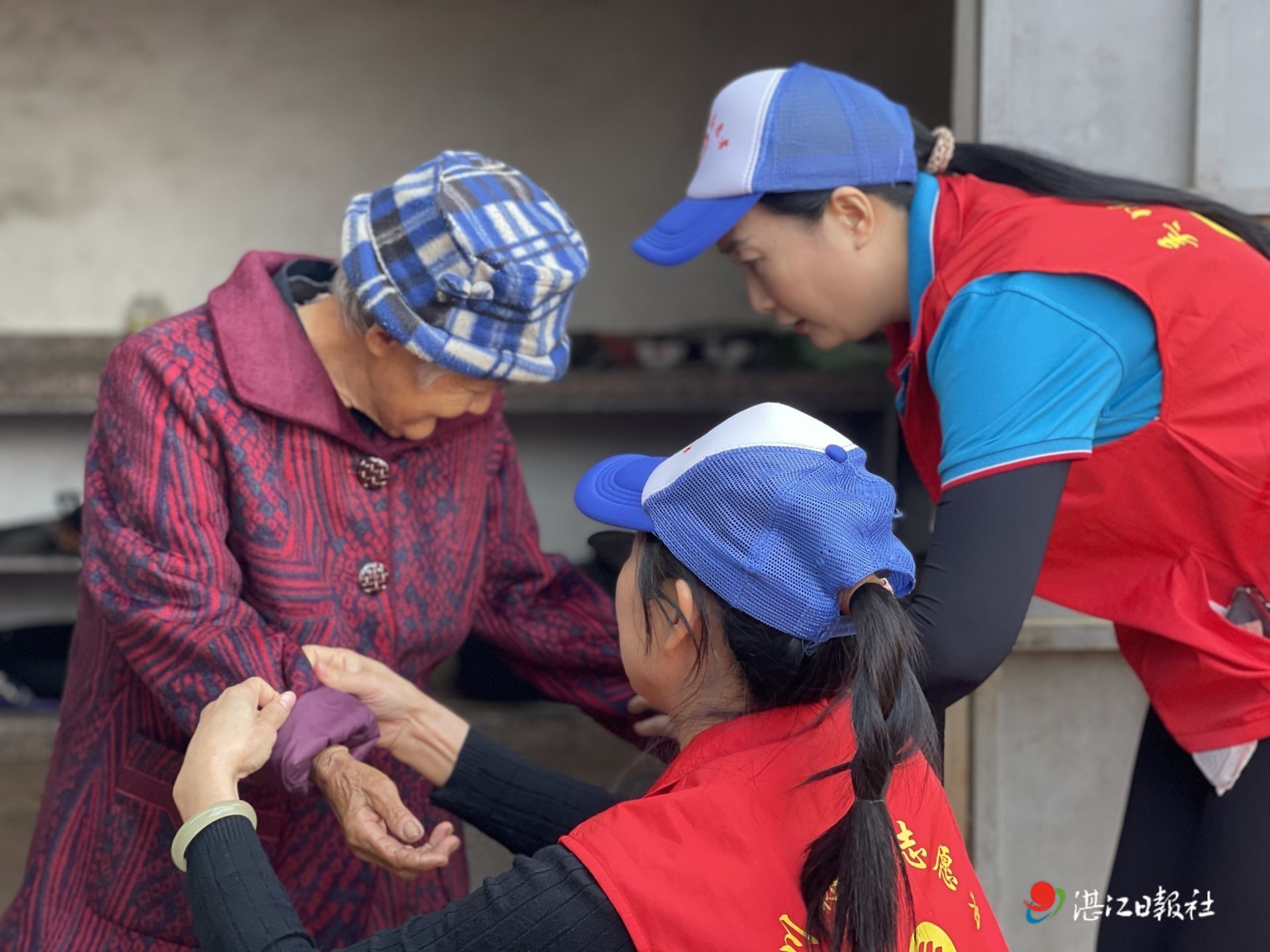 志愿者登門探訪老人。