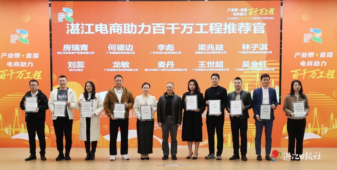 當(dāng)日,活動(dòng)為湛江電商助力百千萬(wàn)推薦官、獲評(píng)2024農(nóng)村直播電商優(yōu)秀案例農(nóng)村電商帶頭人、湛江市第二批市級(jí)電商產(chǎn)業(yè)園和直播基地頒獎(jiǎng);為遂溪縣頒發(fā)全國(guó)農(nóng)村電商“領(lǐng)跑縣”牌匾,為廉江市電商服務(wù)中心和潤(rùn)橙直播基地頒發(fā)2024全國(guó)縣域直播電商中心牌匾。