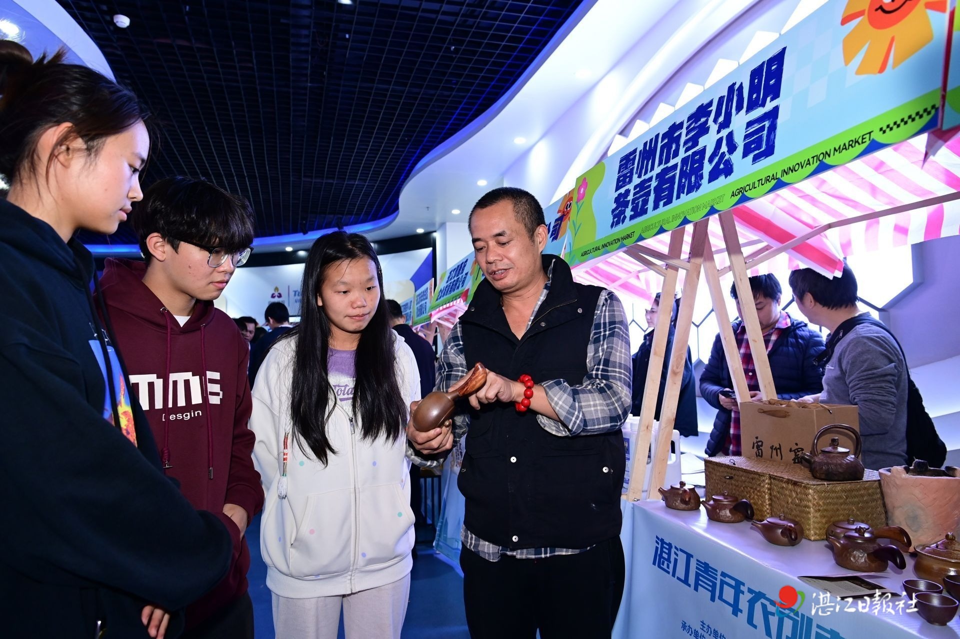 1月8日, 湛江市青年農創集市上,雷州窯茶壺引人關注。