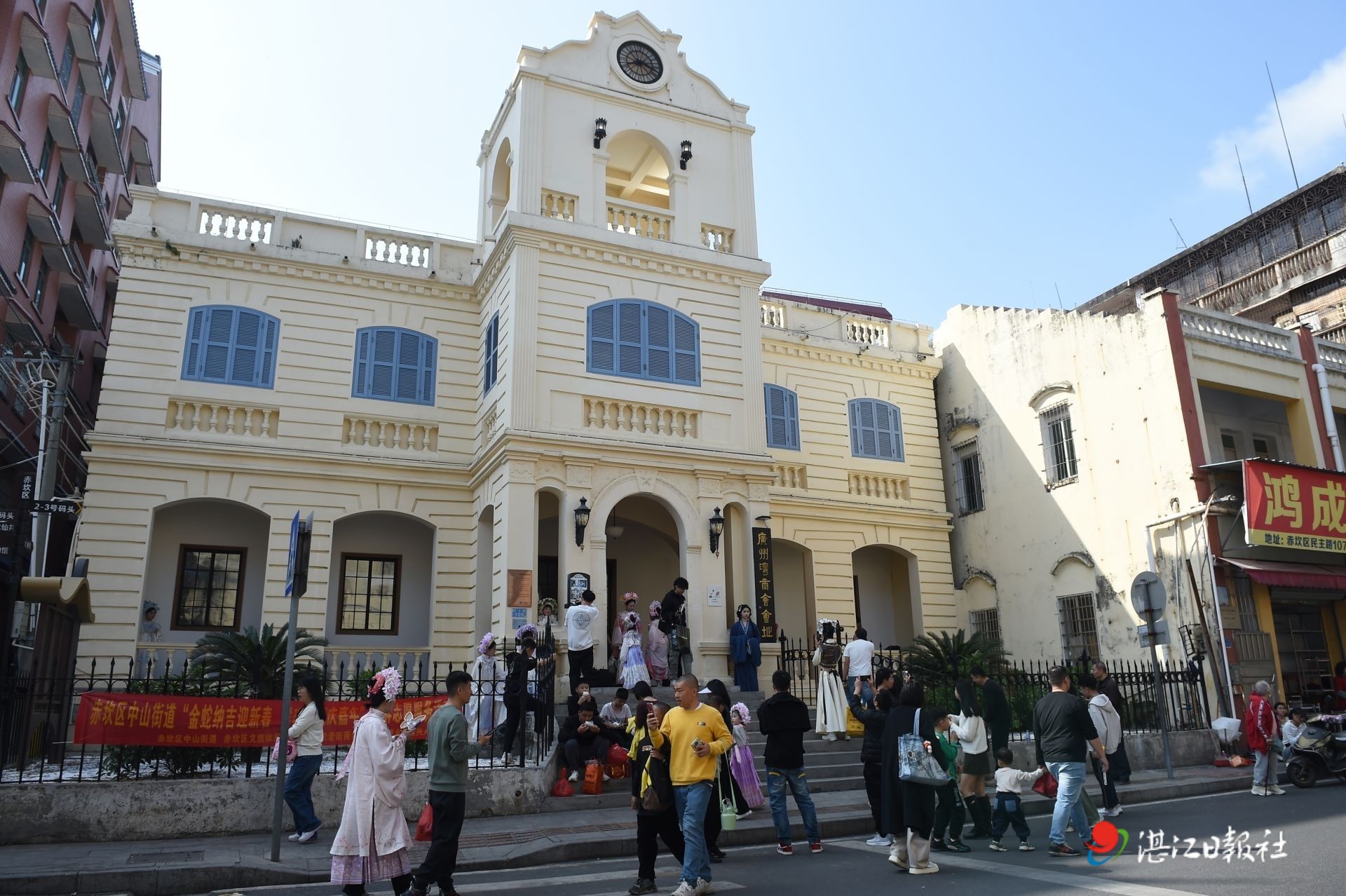 修復后的廣州灣商會會址吸引四面八方的游客前來游玩觀賞。