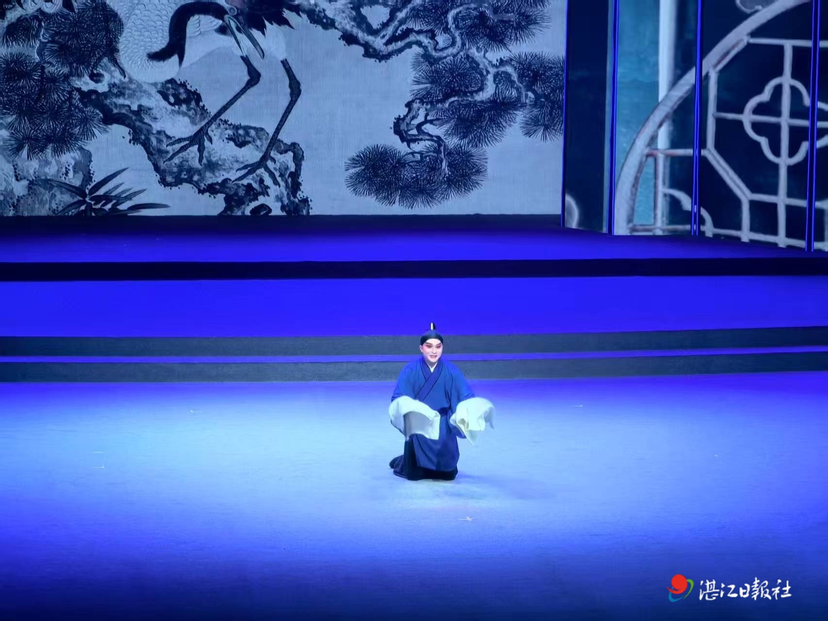 在此次晚會的“戲韻生輝”篇章中,粵劇《醉打蔣門神》、雷劇《牢中摸印》、粵劇《夜祭貴妃墳》、粵劇《寶玉鬧婚》、粵劇《瓦橋關》、粵劇《黃飛虎反五關》之“逼反”、西秦戲《連環計》之“小宴”輪番登場,精彩紛呈。其中,表演雷劇《牢中摸印》選段的,是湛江市實驗雷劇團有限公司的“00后”新生代演員吳仁平,生動展示了國家級非遺項目雷劇的風采和魅力,受到廣大觀眾歡迎和好評。