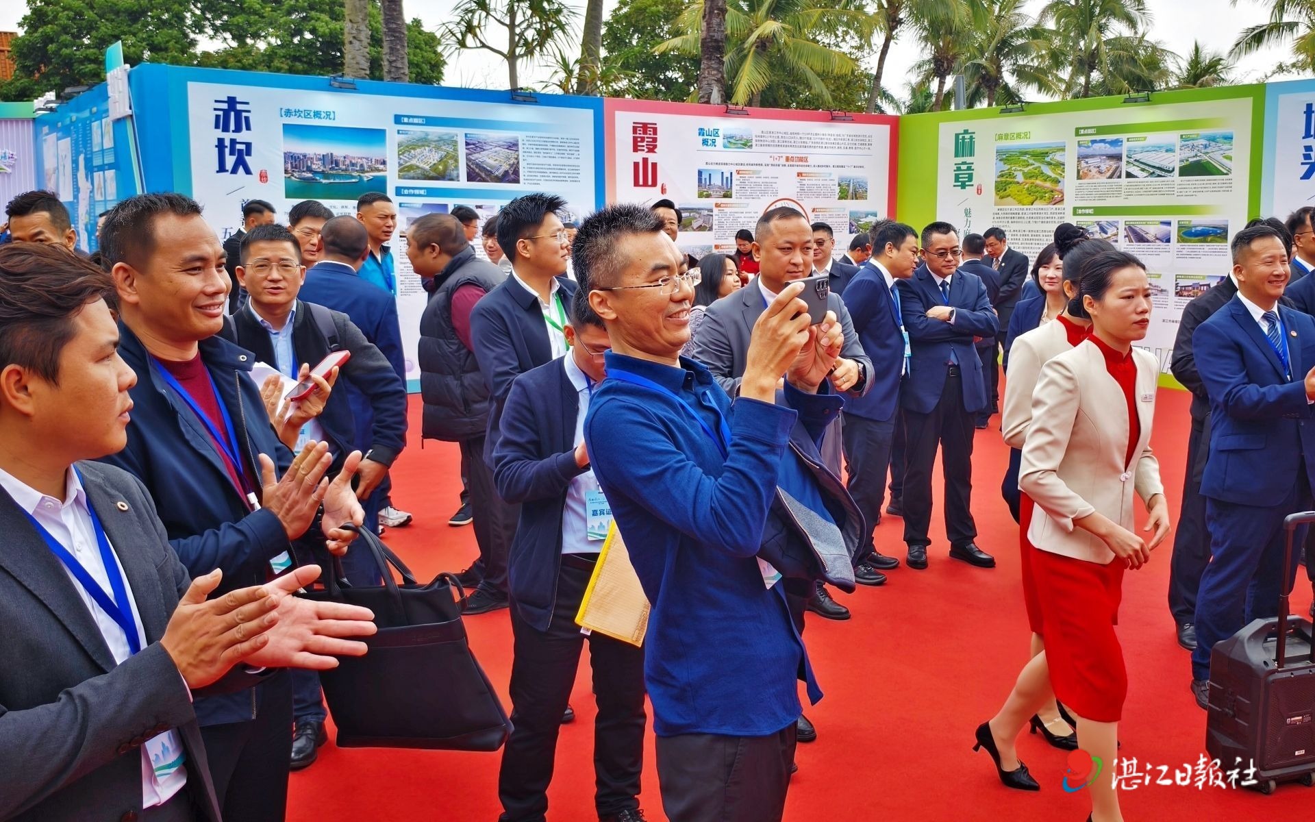 2月28日,湛江海濱賓館,企業代表在展板前了解項目概況。