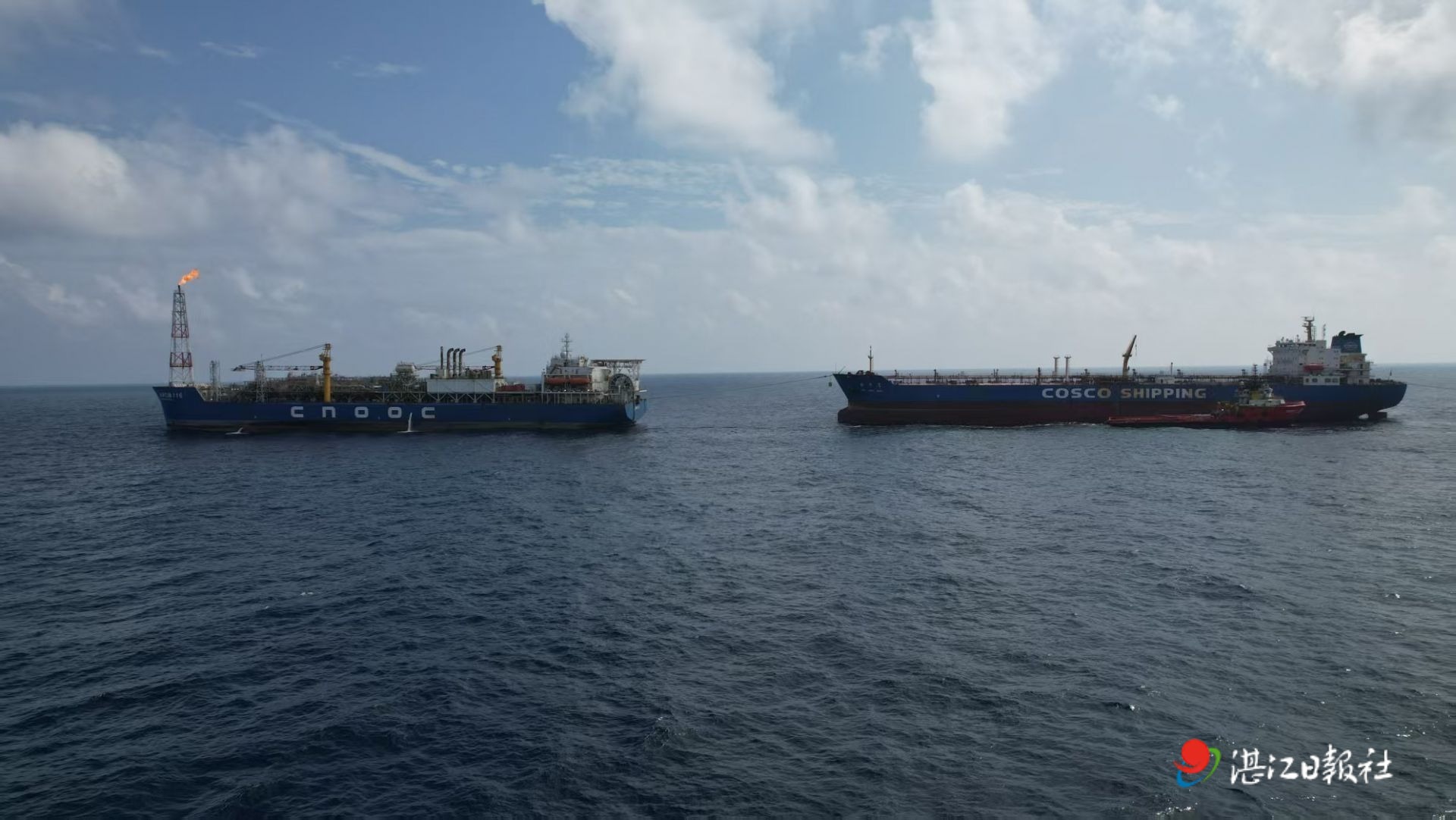 2月28日,滿載原油的“金牛座”提油輪解纜后緩緩離開,中國海油湛江分公司“海洋石油116”FPSO2025年首船提油作業安全高效完成。