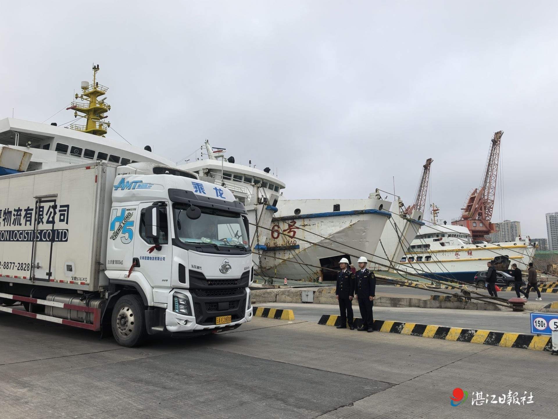 執(zhí)法人員維持車(chē)輛下船秩序。湛江海事局供圖