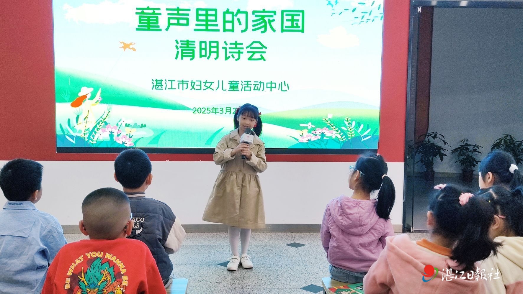 為弘揚中華傳統(tǒng)文化,引導廣大少年兒童堅定理想信念,近日,湛江市婦女兒童活動中心舉辦了“童聲里的家國”清明詩會。兒童們齊聚一堂,通過誦讀經(jīng)典詩詞,在盎然春意中傳承紅色基因,厚植家國情懷。