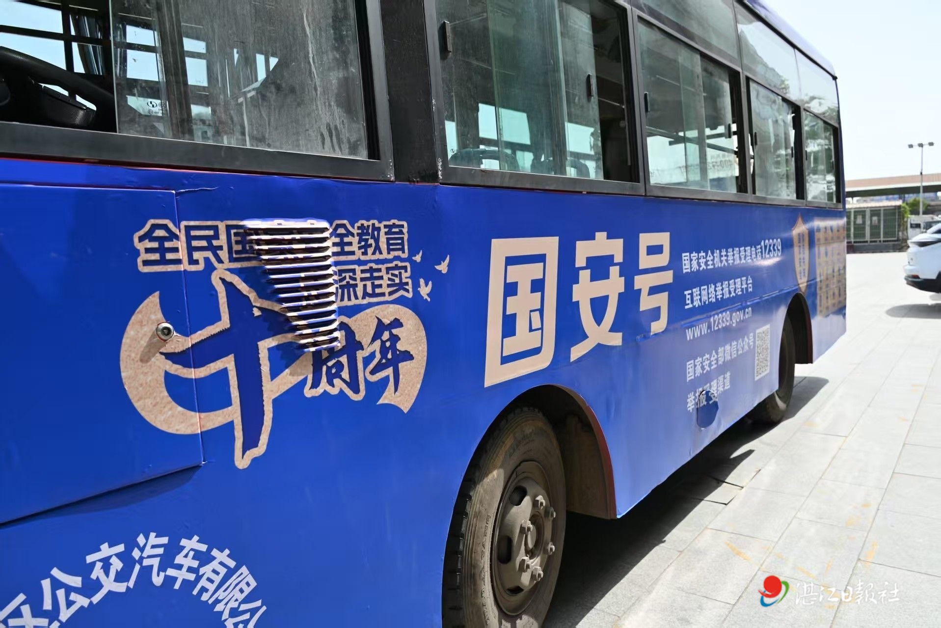 據了解,雷州“國安號”公交車投入運營,沿途經過多個中小學校路段,每天接送師生和市民較多,將成為“國家安全教育”移動“宣傳欄”。