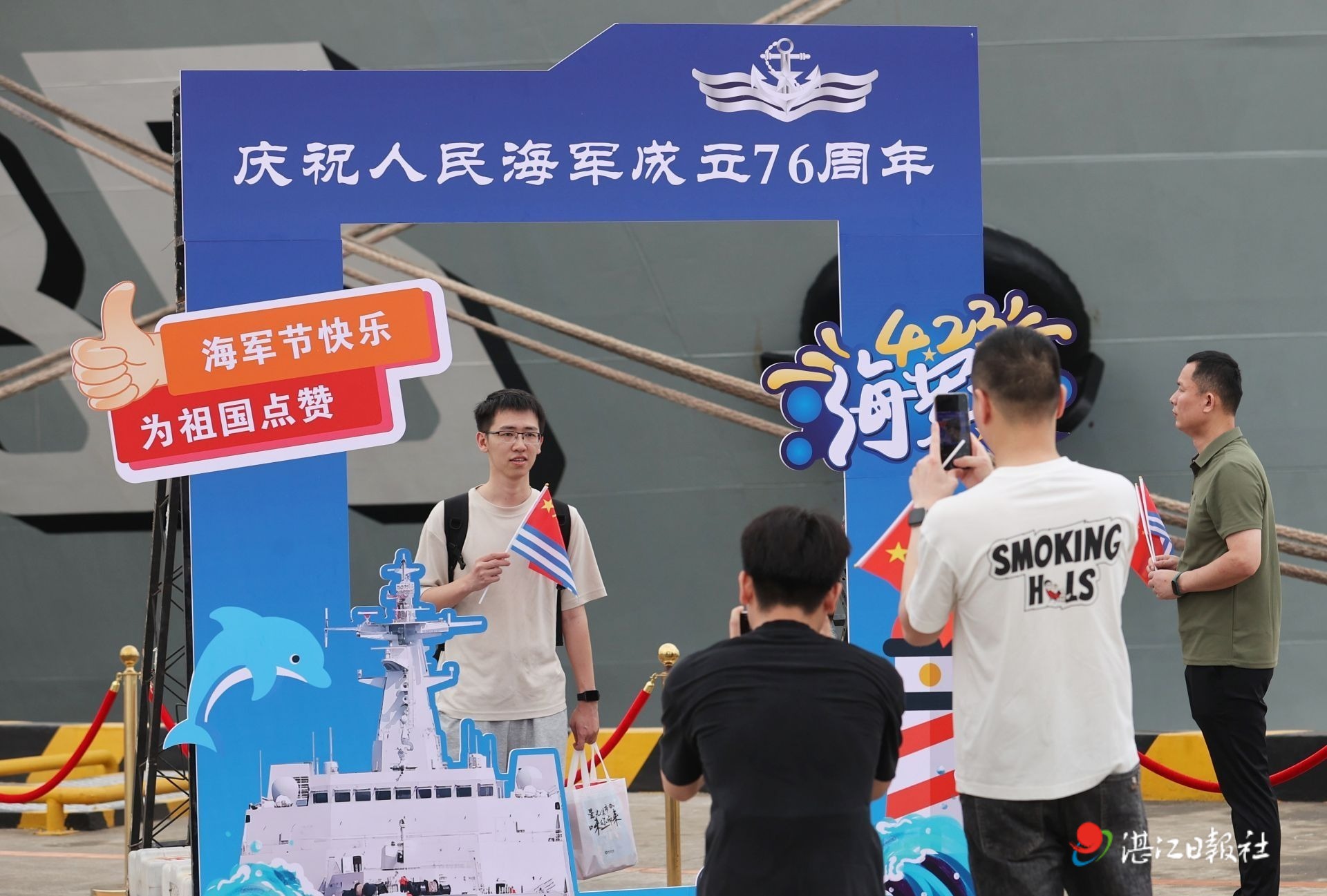 2025年4月23日是人民海軍成立76周年紀念日。為了慶祝這一特別的紀念日,海軍于23日前后在沿海10多個城市港口同步舉行艦艇開放活動,30多艘海軍現役艦艇與公眾見面。其中,4月23日-27日,南部戰區海軍在湛江舉行軍營開放日活動,三艘現役艦艇焦作艦、洪湖艦、祁連山艦“張開懷抱”,歡迎來自全國各地的參觀群眾,零距離感受向海圖強的現代化海軍。