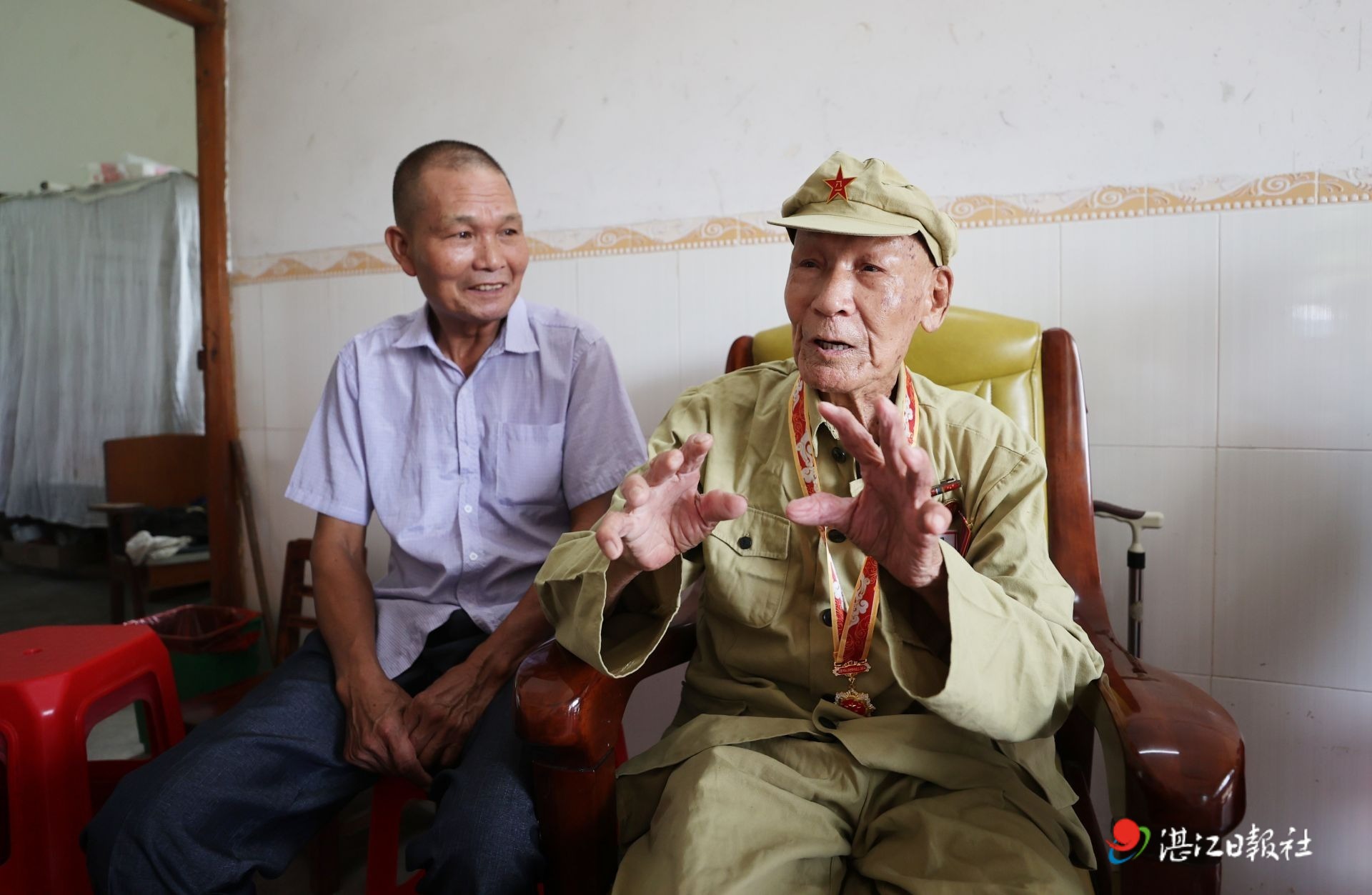 日前,記者來到廉江市石角鎮文豪村百歲老人鐘勝華的家時,這位參加過淮海戰役、渡江戰役、解放上海戰役和抗美援朝的老兵,已穿好軍裝,掛上亮眼的獎章,對約訪等候多時。