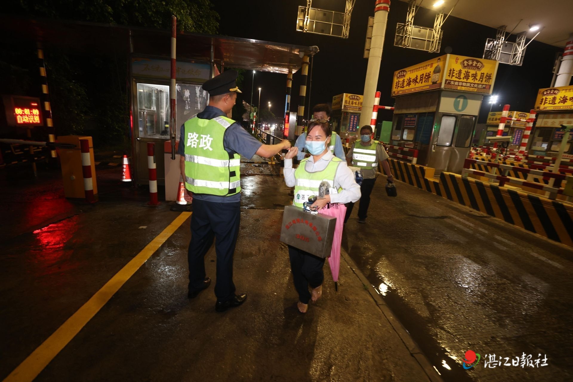 湛江海灣大橋收費站工作人員站好最后一班崗。