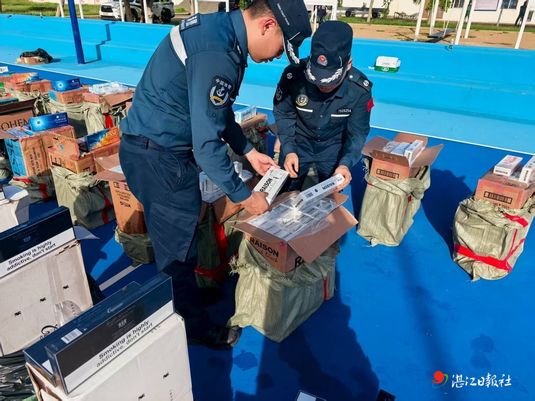 在“粵海亮劍2025”打擊海上走私專項(xiàng)行動的持續(xù)高壓態(tài)勢下,連日來,湛江海警局重拳出擊,連續(xù)查獲4起海上走私香煙案件,查扣各類走私香煙共27000余條,總案值770余萬元,有力斬?cái)嗔朔欠êI献咚芥湕l,彰顯了守護(hù)國門安全與經(jīng)濟(jì)秩序的堅(jiān)定決心。