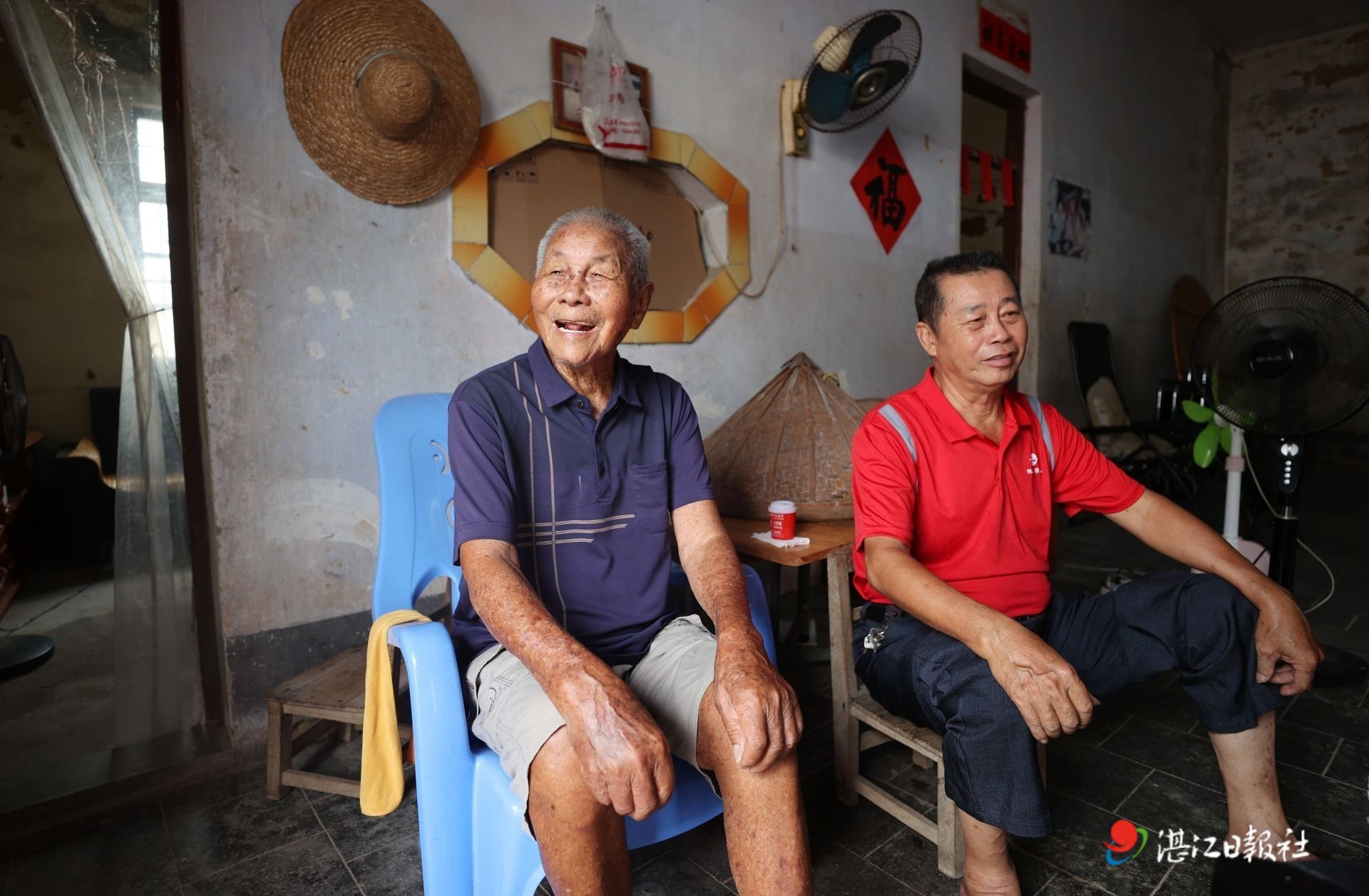 吳川市覃巴鎮山賴村103歲老人劉福貴(左)。