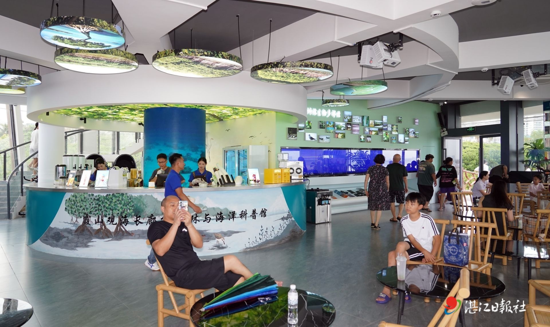 走進科普館,仿佛走進一座虛擬的“海洋世界”。紅樹林生物多樣性圖譜、紅樹林生態系統微模型、各類科普書籍……正值暑假,不少家長帶著小朋友來“遨游”紅樹林知識的海洋。“沒想到這里藏著一座寶藏打卡地,小朋友可以在玩耍中學到知識。里面還有空調、洗手間、提供飲品,假期帶娃又多了一個好去處。”正帶著兩個孩子來參觀的林女士說。
