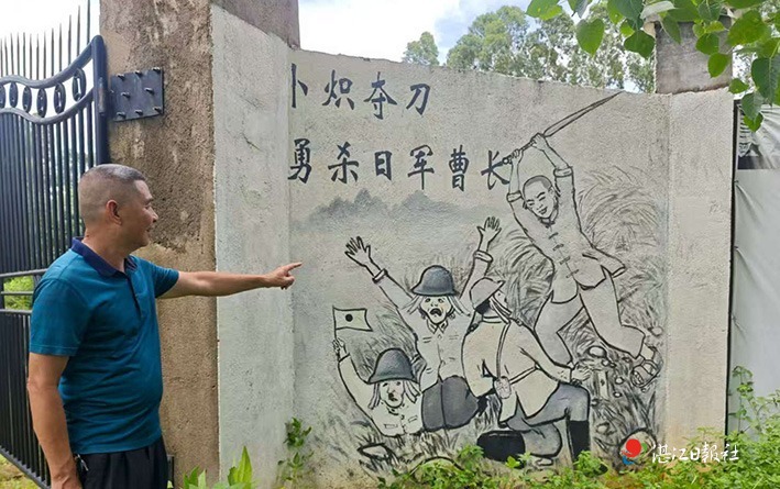 同年11月,村民卜熾的壯舉成為這段歷史中最動人的篇章。這位50多歲的普通農(nóng)民在甘蔗林被日軍抓住后,面對審問始終沉默,趁敵不備奪過日軍曹長的指揮刀猛砍,隨即鉆入密林脫險。“卜熾爺?shù)挠職怏w現(xiàn)在骨頭里!”當天,圍坐的老人向記者講述這段傳奇時仍難掩激動。記者跟隨卜權走進深坭塘抗日紀念園,在“卜熾奪刀勇殺日軍曹長”的墻繪前,卜權指著畫面生動還原:“當時他孤身一人與日軍周旋,用最原始的武器捍衛(wèi)尊嚴,這種精神至今仍激勵著我們。”