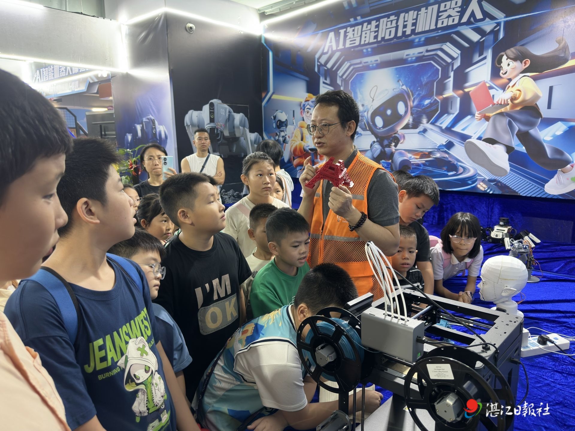 8月7日,湛江日報社小記者暑假活動首場秀舉辦,近30名小記者走進鷹展假期廣場湛江浩瀚AI機器人展,近距離觀察各類智能機器人,探秘機器人原理,在沉浸式互動中感受前沿科技魅力,種下創新種子。