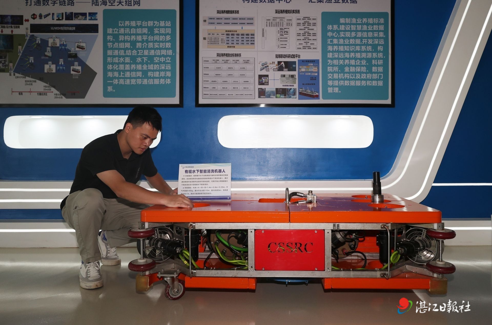 湛江灣實驗室展廳展示的水下智能清潔機器人。記者李忠 攝