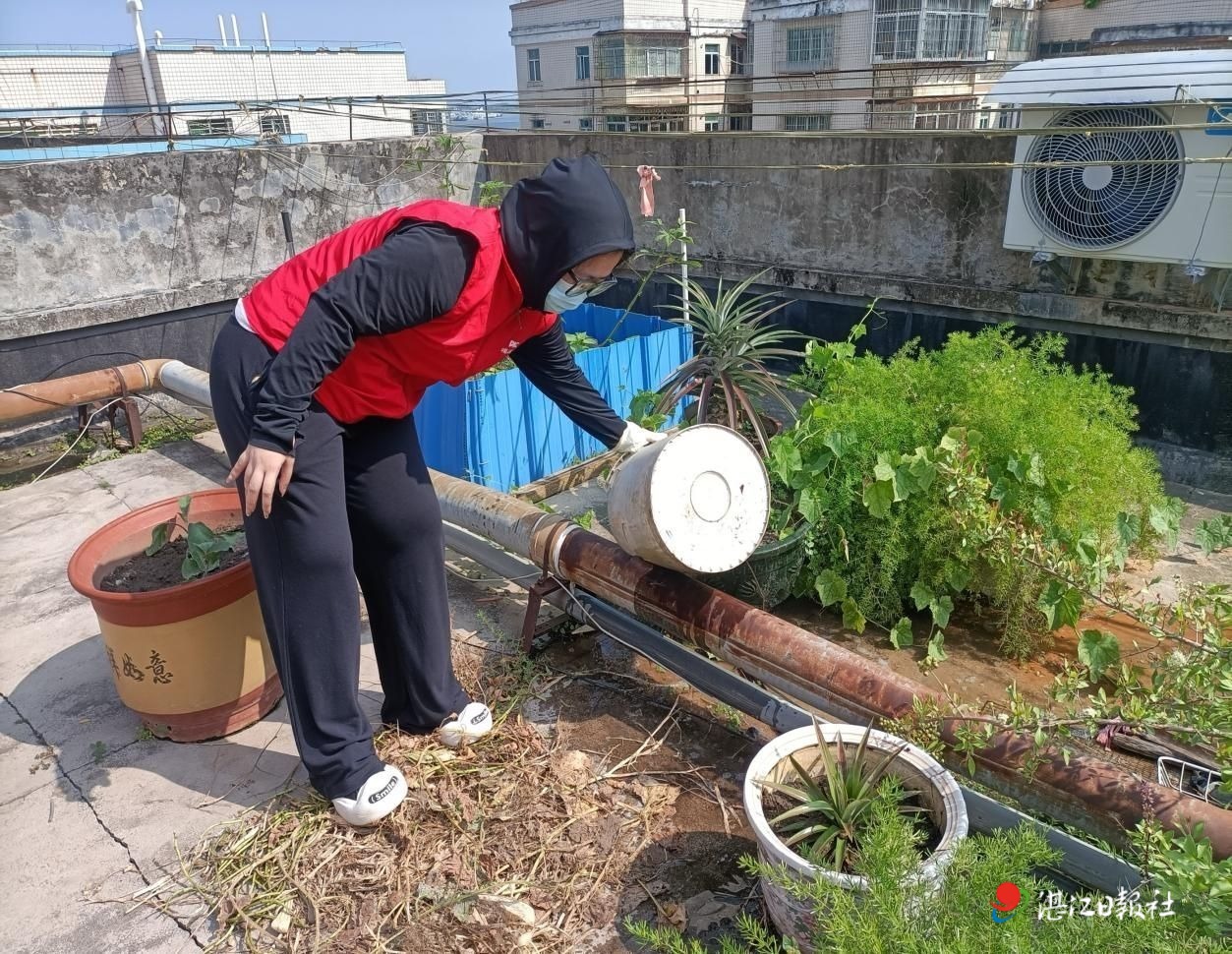 活動重點針對老舊小區衛生死角。志愿者們分組協作,清理墻面“牛皮癬”、樓道雜物及綠化帶垃圾。針對蚊蟲孳生重點區域,志愿者們爬上樓頂平臺,逐一清理花壇、廢棄容器及排水溝,消除積水隱患,從源頭阻斷蚊媒傳播鏈。