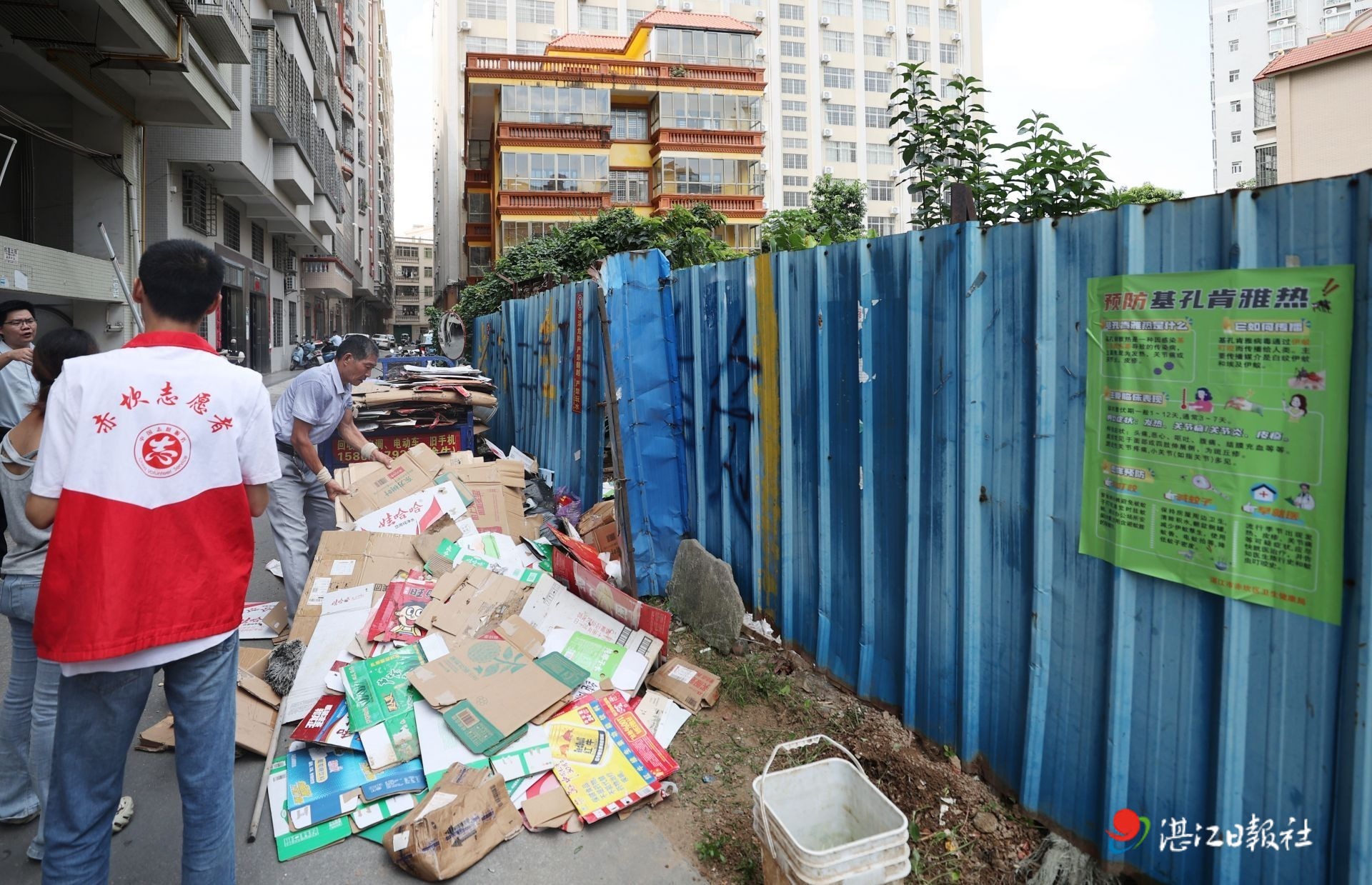 12日上午,記者來(lái)到民主街道,將情況反映給民主街道主要領(lǐng)導(dǎo),其立即組織了包括民主街道、金城社區(qū)、城管等部門(mén)工作人員和志愿者,與記者一齊趕到現(xiàn)場(chǎng)開(kāi)展整治工作。同時(shí),向赤坎區(qū)衛(wèi)健局匯報(bào),請(qǐng)求派出專(zhuān)家到現(xiàn)場(chǎng)提出專(zhuān)業(yè)整治方案。