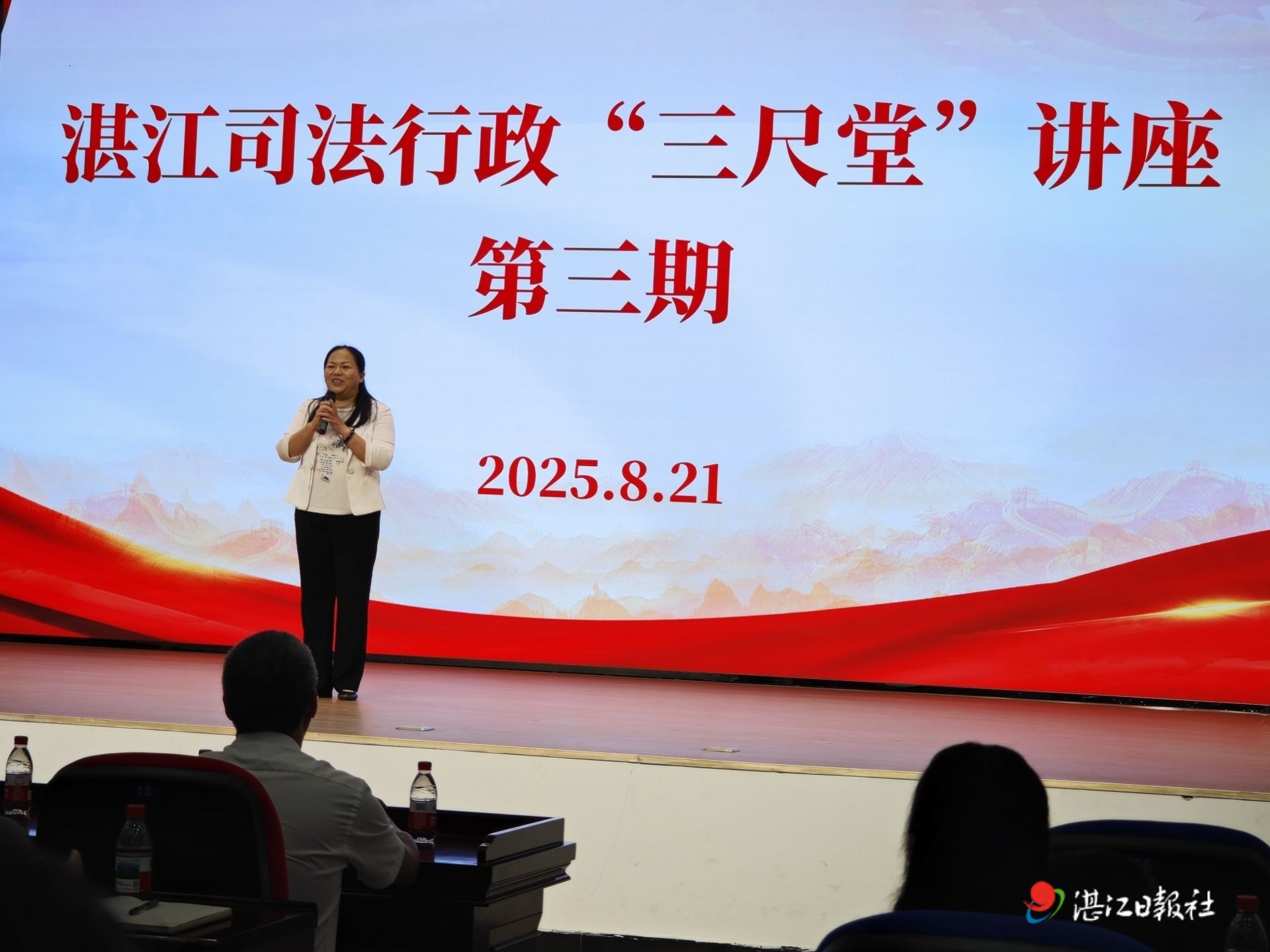 8月21日晚,湛江市司法局舉辦第三期司法行政“三尺堂”講座,湛江市司法局黨組書記、局長羅東玲以“培養孩子成為有貢獻的社會人”為主題,為現場聽眾帶來了一場富有思想深度和教育意義的精彩授課。