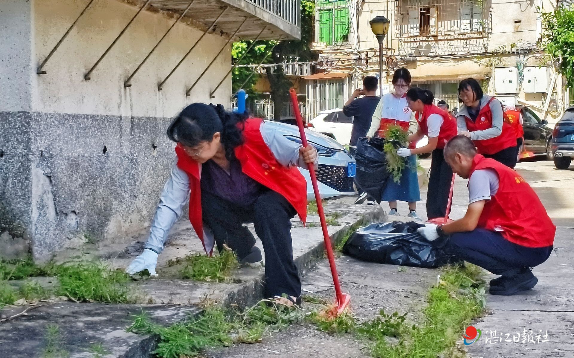 9月5日,中山街道橋興社區(qū)聯(lián)合市生態(tài)環(huán)境局赤坎分局、中粵能源有限公司、湛江電力有限公司等掛點(diǎn)單位,開(kāi)展“樓道清障”“街巷清潔”“綠地?zé)ㄐ隆比笳涡袆?dòng)。行動(dòng)中,社區(qū)工作人員、志愿者和居民們分工協(xié)作,大家逐樓排查,肩扛手抬,將長(zhǎng)期堆積在樓道內(nèi)的雜物、廢棄家具等逐一搬離,暢通消防通道;同步清理綠化帶內(nèi)的生活垃圾,修整花木,并對(duì)損壞的綠地進(jìn)行補(bǔ)植。在北橋二橫路3號(hào),幾名工作人員登上電動(dòng)自行車車房屋頂,揮動(dòng)鐵鍬清掃雜草并將積存的枯枝敗葉攏成堆,環(huán)衛(wèi)車在車房下方緊密配合清運(yùn),現(xiàn)場(chǎng)協(xié)作有序。