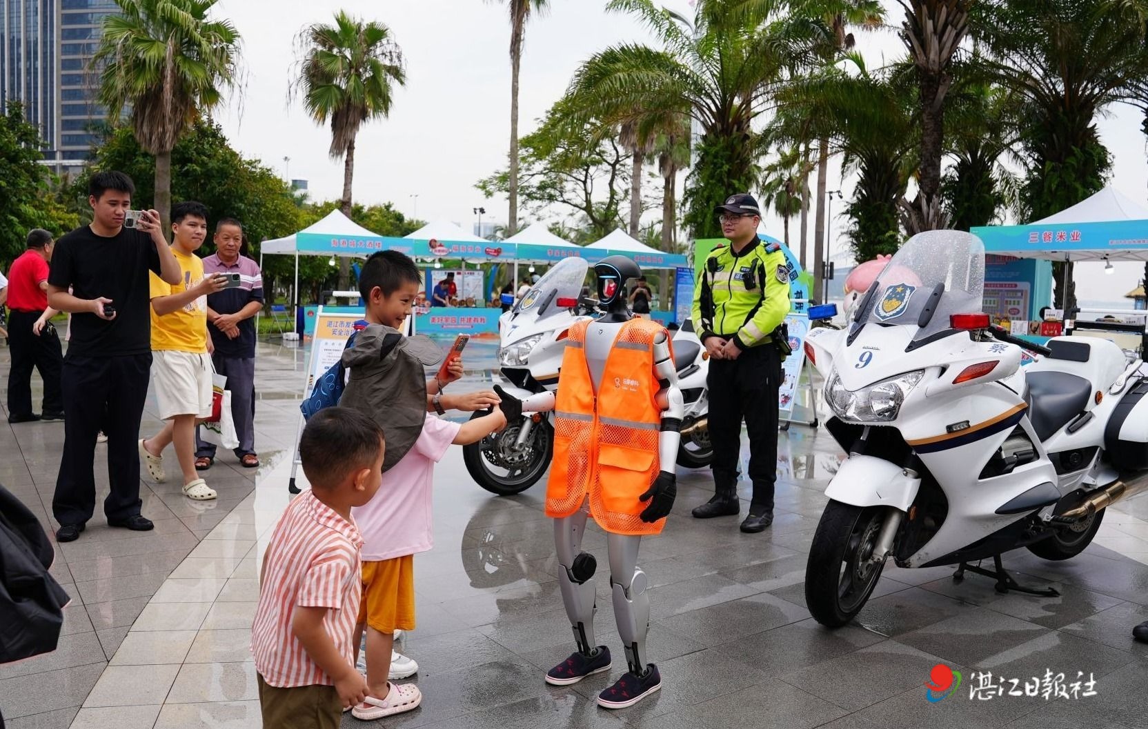 志愿服務區始終洋溢著溫暖氛圍。湛江市藍天救援隊的急救教學區的群眾圍成一圈,隊員在模擬人前,邊示范邊細致講解“心肺復蘇術”要點。
