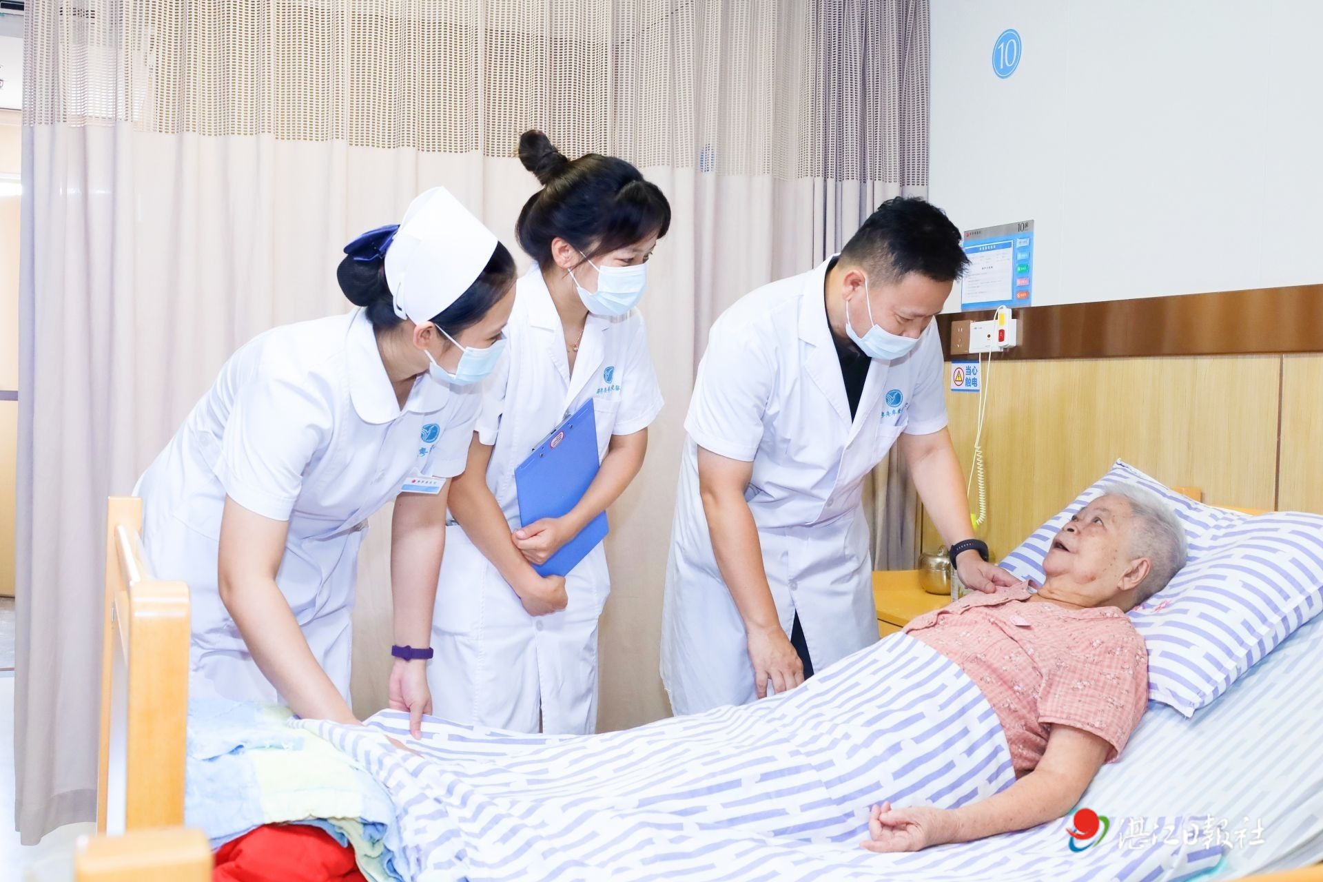 醫(yī)護(hù)人員診治老人。