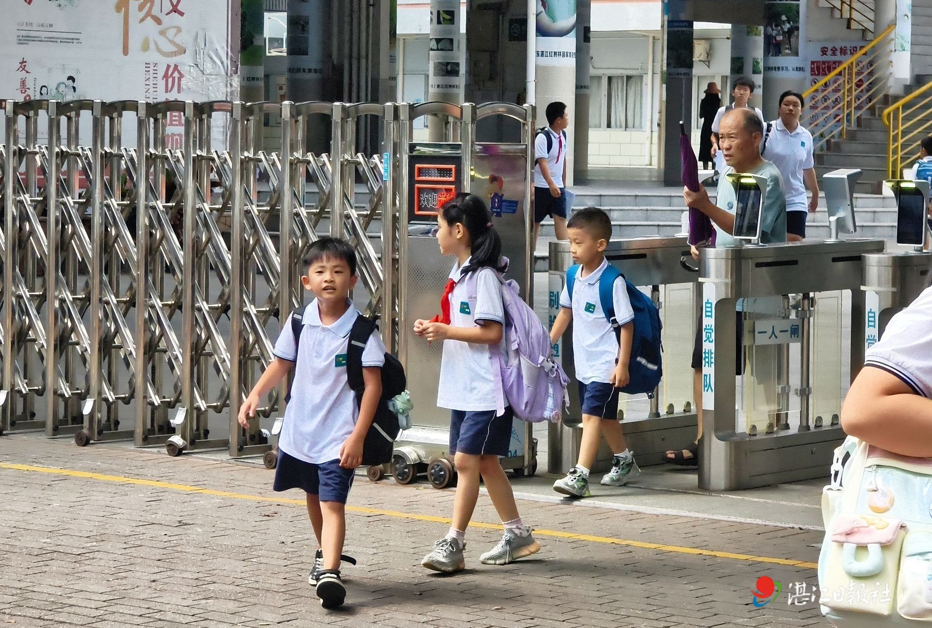 9月23日下午,受臺風“樺加沙”影響,湛江多所學校實行停課,復課時間將根據臺風影響情況另行通知。圖為金沙灣某學校一些學生回校領取自己的書包和課本,以便在居家期間保持學習進度。